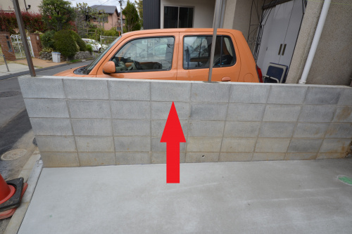 コンクリートブロック(赤い矢印)のサイズについてです。