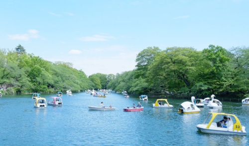 春~秋の期間はボート場がオープンし、手漕ぎ・足漕ぎボートが楽しめ水上か