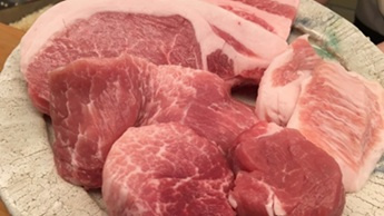 漢方三元豚や六白黒豚など、複数の銘柄豚の中から好みの肉を選べます。