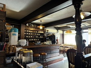 レンガ造りのレトロの外観が特徴で、店内はアンティーク家具が並んだ昭和の喫茶店のような雰囲気です。