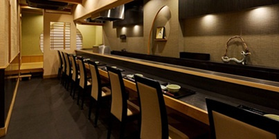 カウンター席と掘りごたつ式の半個室があり、カウンター席では揚げたての音と香を楽しめます。